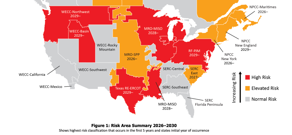 Areas of Risk of Energy Shortfalls in USA